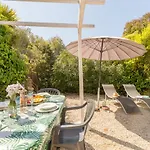 La villa L'Auguière Ouest, maisonnette au cœur du vignoble proche de la mer et des sentiers côtiers offre una vista sul giardino che gli ospiti possono godersi. La villa dispone di un bagno con una doccia. Sono inoltre disponibili asciugacapelli.